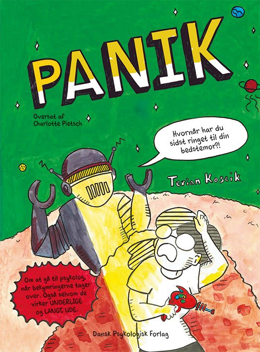 Terian Koscik er både hovedperson i og forfatter til denne fine tegneserie. Med stor ærlighed og sort humor beskriver hun, hvordan det er for hende at leve med angst og bekymring. Og hvordan terapi lærte hende en meget vigtig ting: Der er ingen følelser, der er mere ‘rigtige’ end andre.